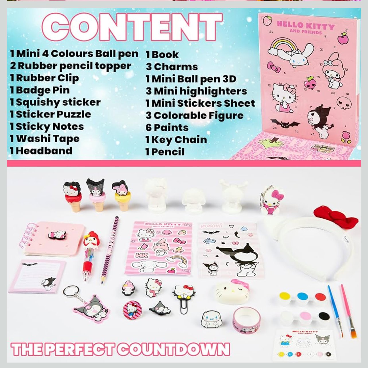 用Hello Kitty降臨節日曆來慶祝節日。 三麗鷗有24個有趣的驚喜,包括文具、貼紙、吊飾和創意配件,非常適合喜歡日常興奮和卡哇伊樂趣的女孩。 📦 門市自取暫停,可預約交收 滿$200可享免費順豐門市或智能櫃送貨 💥請注意體積較大貨品未能放入智能櫃,例如:滑板車、嬰兒車、單車…. (其他偏遠地區需另付附加費) 預約交收可WhatsApp 69388829 🌟美國貨品的貨期一般為3-5星期,因不能準確預算運輸及清關時間,請預鬆貨期。由於貨物種類太多, 批發及零售同步,庫存或未能及時更新。如付款後現貨售罄,貨期將自動延長至下一批新貨期,恕不接受貨期延誤原因取消訂單退款,下單前敬請諒解。(廠家或供貨商缺貨除外) 🌟 以上帖文內容及外盒包裝只供參考用途,商品原廠隨時有更換新包裝權利, 圖片只供參考,一切以實物為準。 🌟 人手量度尺寸有機會有1至3cm誤差實屬正常。 🌟貨品在運輸途中導致產品包裝外盒有任何損毀凹陷,但不影響其產品本身食用/使用,本司不會作任何更換或退款,介意慎購!如需送禮,建議選擇另加外包裝。 🌟退換貨安排:非人為損壞,質量問題7天內有壞包換,運費需由客人支付。
